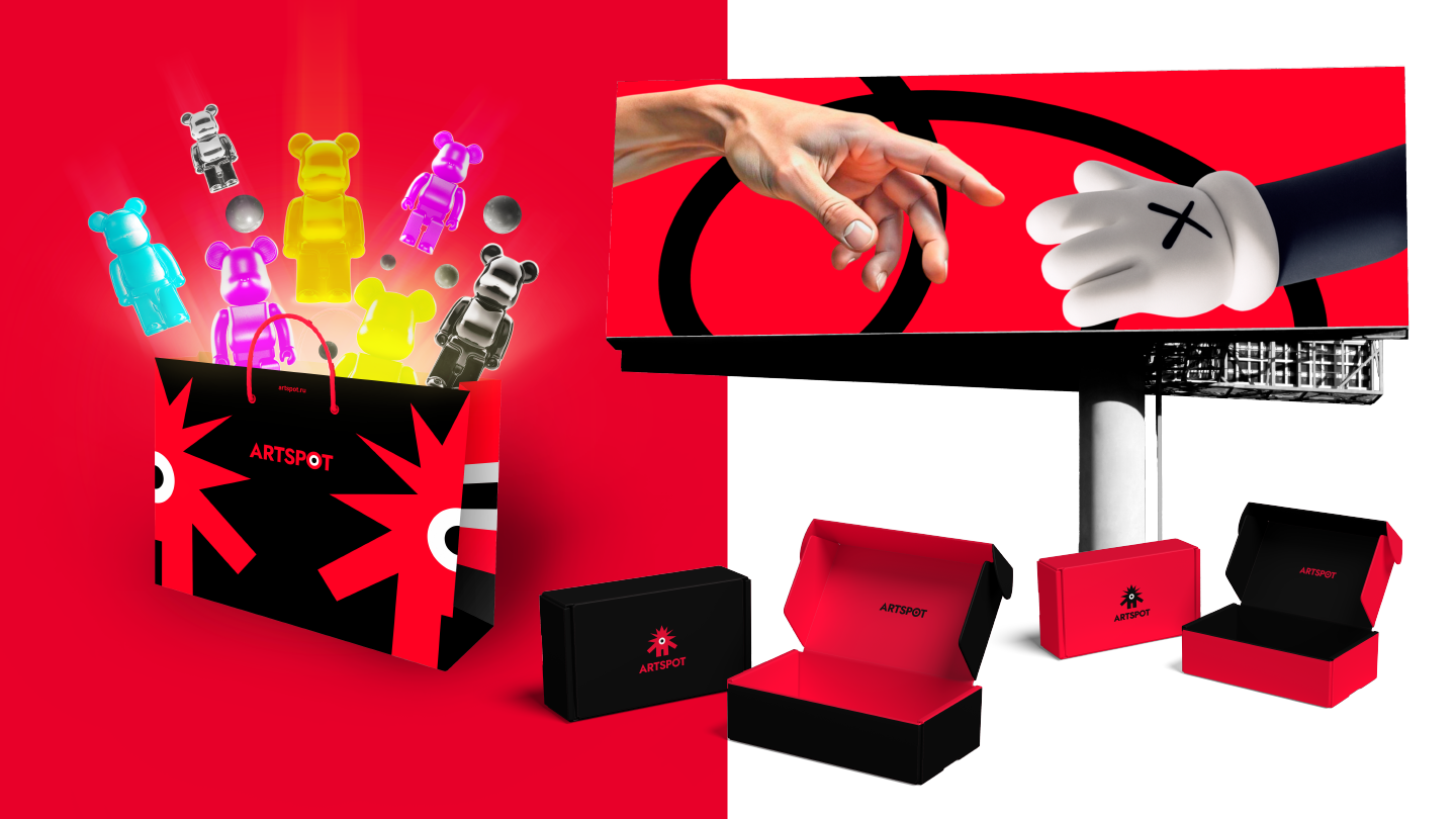 Фирменный знак ARTSPOT — уникальный маскот бренда — собирательный образ культовых коллекционных фигурок, транслирует собой такие основные смыслы, как: