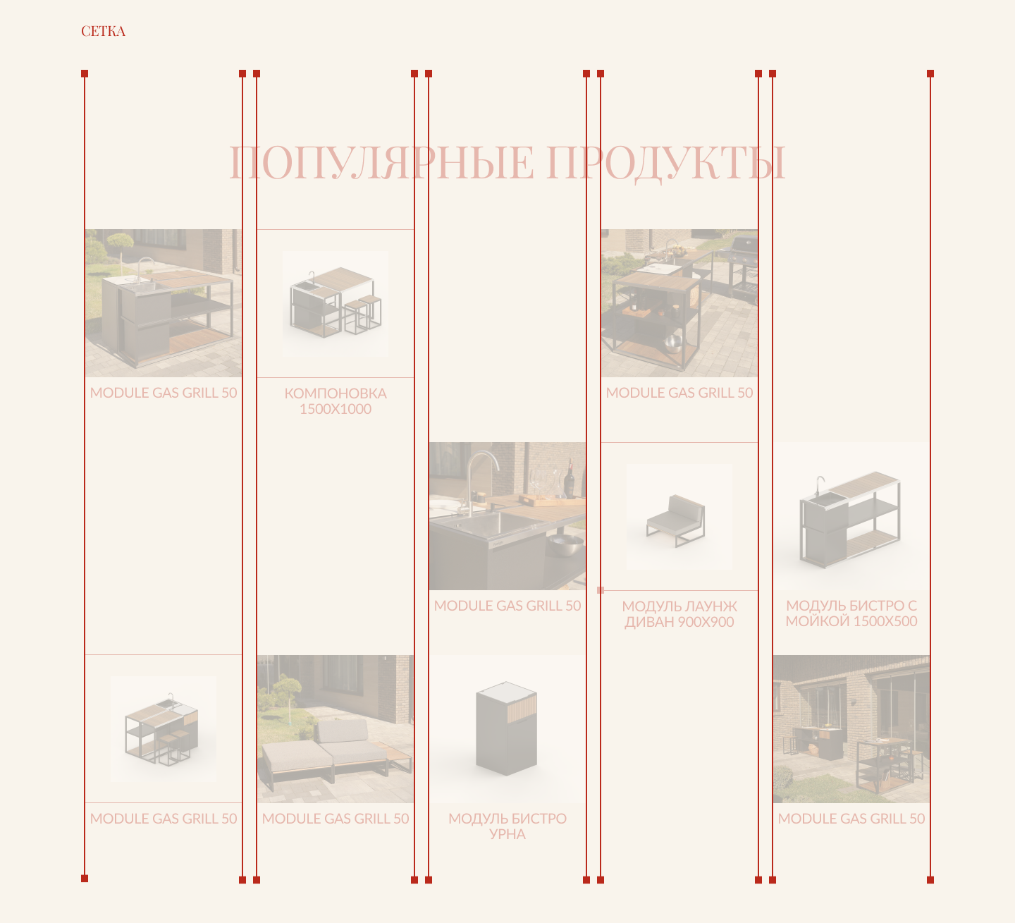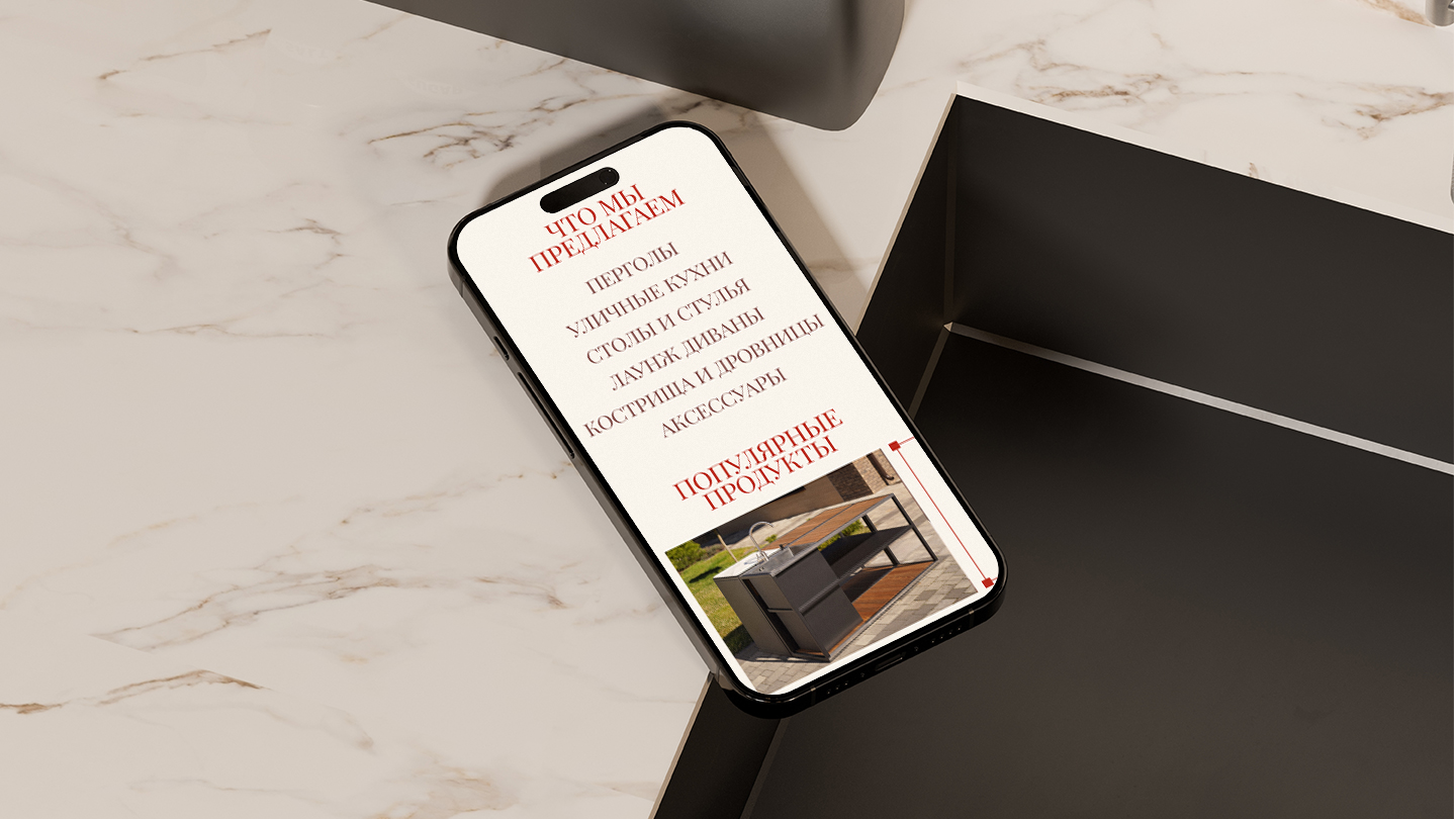 На основе собранных данных были разработаны вайрфреймы и прототип. Особое внимание уделялось удобству пользовательских сценариев: от знакомства с философией бренда и визуальной галереей до лёгкого перехода к контактам.