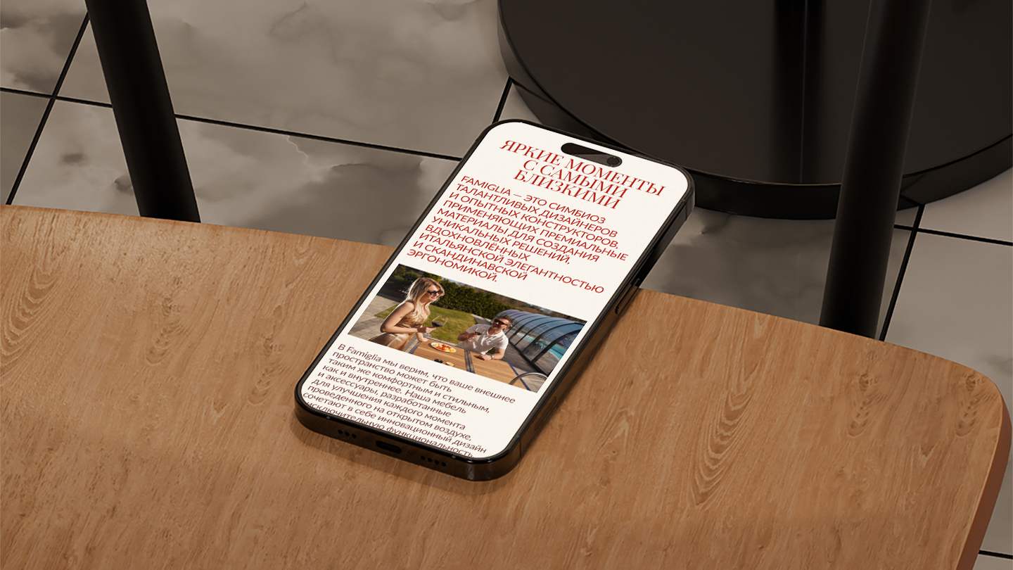 Мы создали лендинг, который не только презентовал философию Famiglia, но и продемонстрировал коллекцию в премиальном визуальном ключе