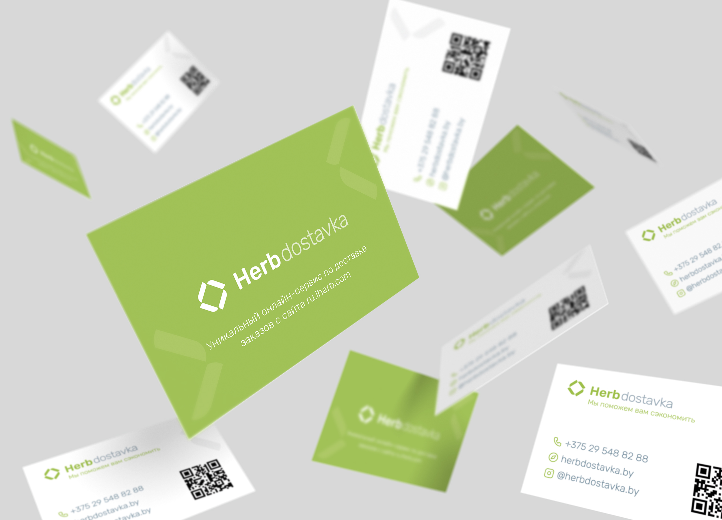 Базовыми цветами логотипа стали зеленый и серый цвета. Контрастируя между собой, они позволил нам вывести надпись «IHERB» на передний план – акцентируя, таким образом, внимание на специализации сервиса.