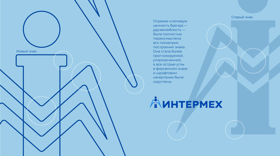 На основе платформы бренда была проведена модернизация логотипа «ИНТЕРМЕХ», позволившая сохранить узнаваемость знака и одновременно сделать его более современным и технологичным.