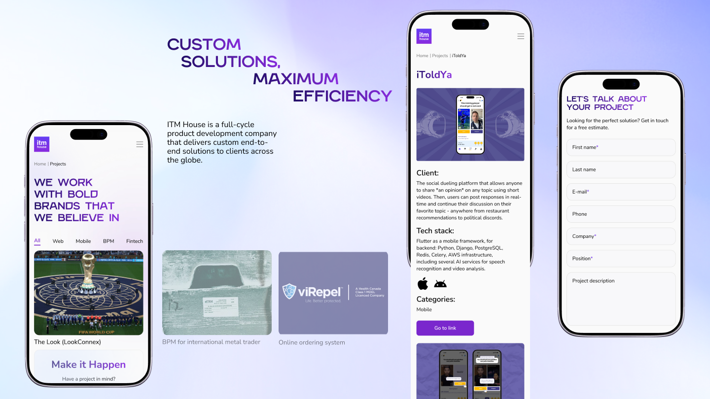ITM House — международная компания, специализирующаяся на создании программного обеспечения полного цикла: от Discovery-фазы и аналитики до разработки SaaS-продуктов и масштабируемых цифровых платформ