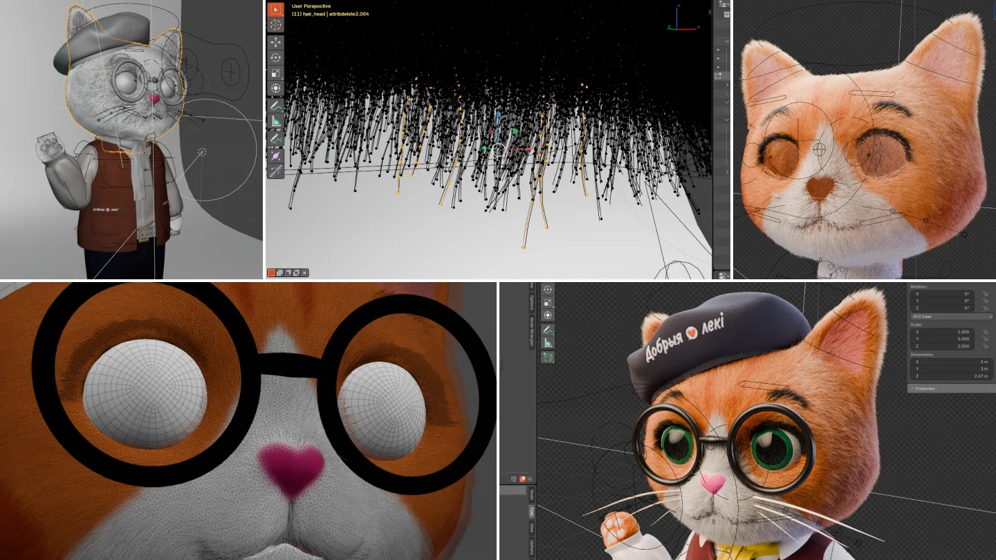Дополнительной сложностью стала работа с шерстью — один из самых трудоёмких этапов при разработке 3D-персонажей, требующий детальной настройки структуры волос и их поведения.