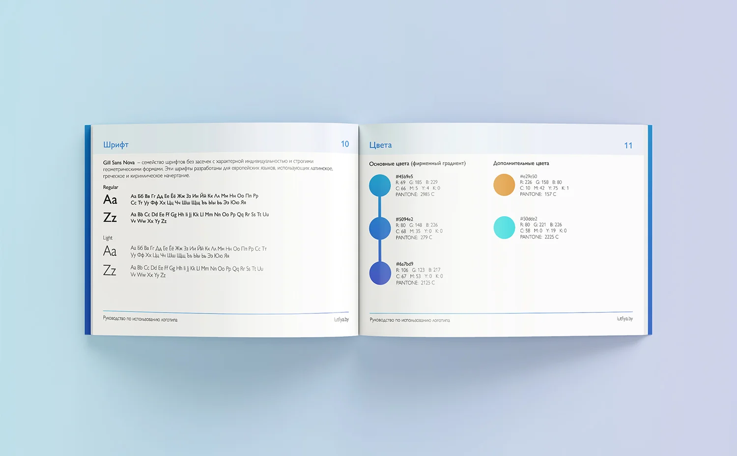 По пожеланию собственника одним из основных фирменных цветов стал «индиго», мы использовали его в градиенте, получив таким образом довольно широкую цветовую палитру оттенков. Для работы с логотипом было разработано руководство по использованию логотипа и фирменного стиля.