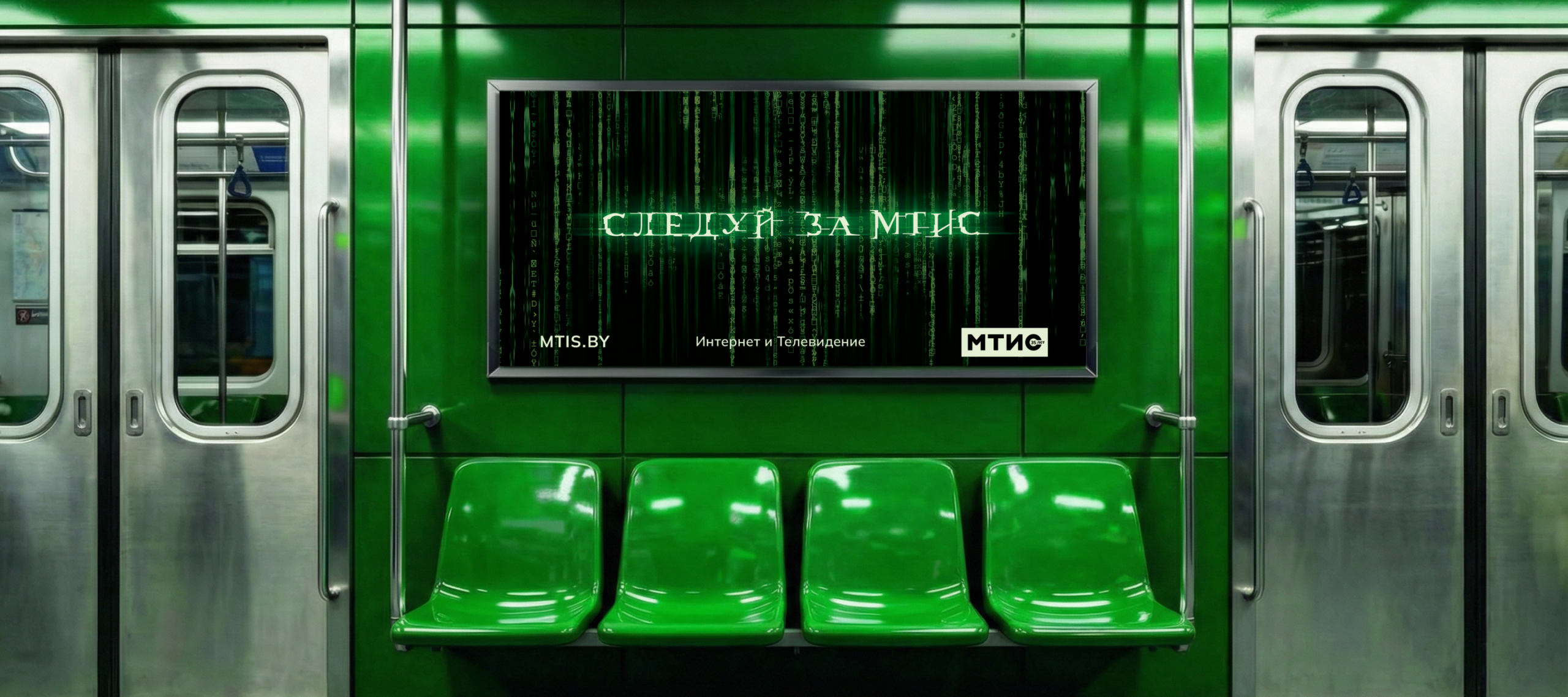На основе аналитики были предложены несколько креативных направлений. В финале было выбрано направление «Матрица» — визуально и смыслово вдохновлённое культовым фильмом, хорошо узнаваемым среди целевой аудитории. Ключевой слоган кампании — «Следуй за МТИС» — стал метафорой осознанного выбора стабильности и надёжного интернет-соединения в мире постоянных изменений.