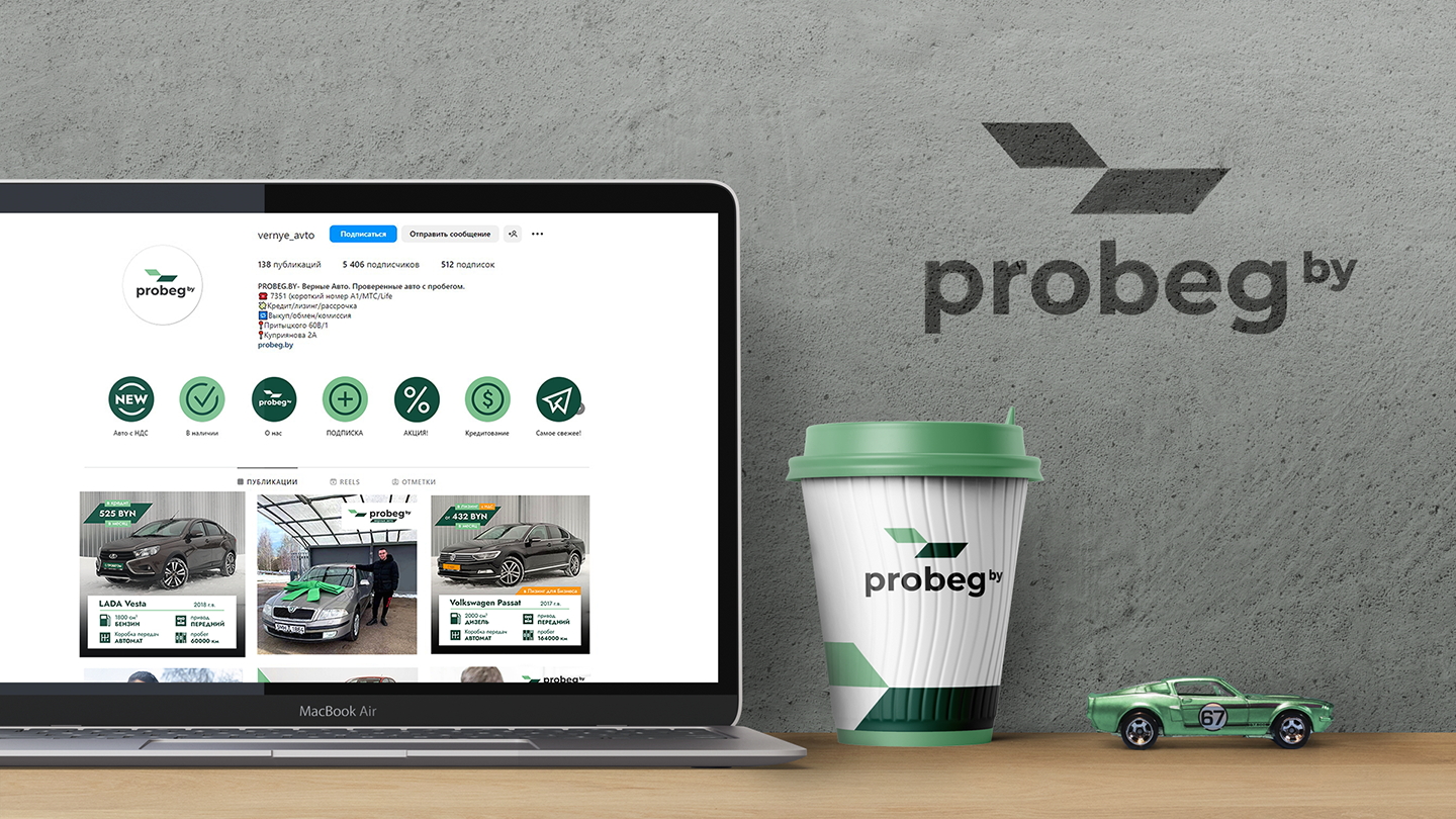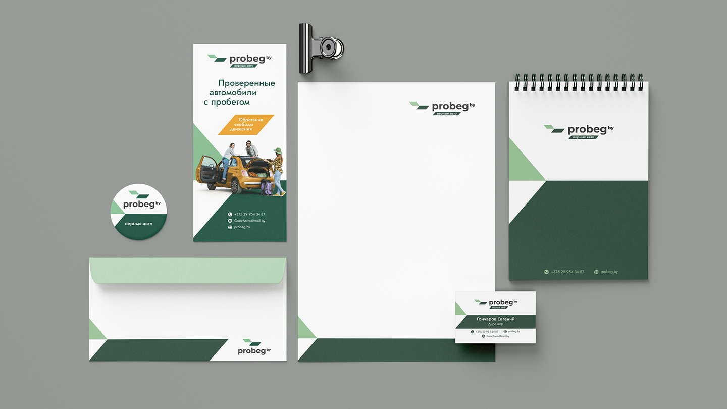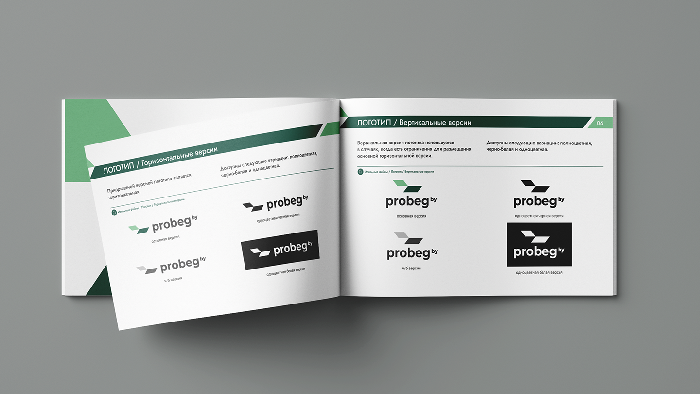 - В логотипе только probeg.by строчными буквами, шрифтовой логотип.