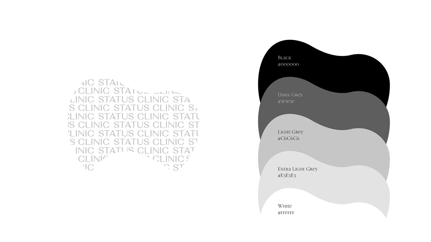 Типографика логотипа передаёт ощущение утончённости и профессионализма, а фирменная палитра в чёрно-белых и серых оттенках усиливает ассоциации с чистотой, строгостью и премиальным уровнем сервиса.