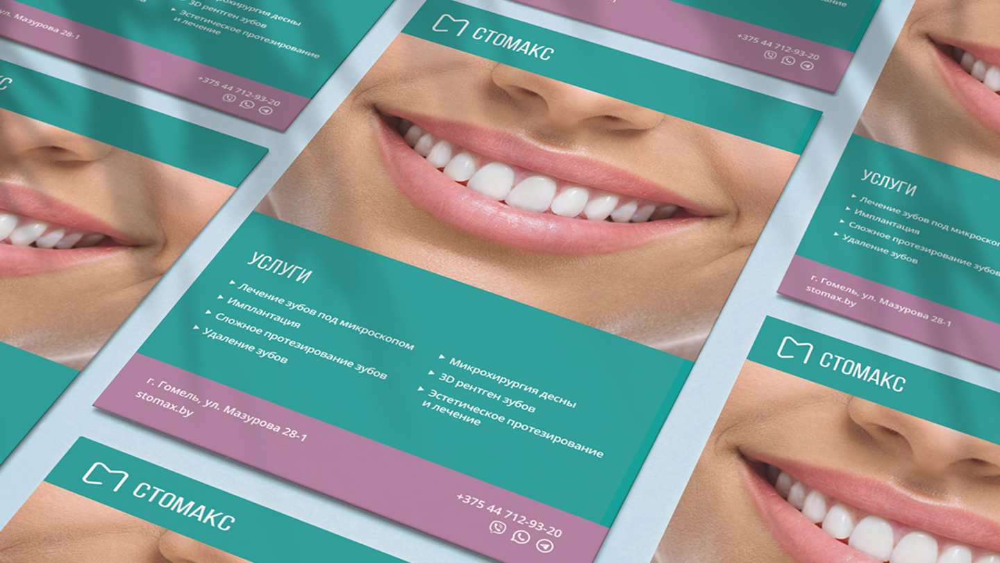 В результате проекта была разработана целостная визуальная айдентика для стоматологии СТОМАКС: от логотипа до фирменного стиля и графической системы