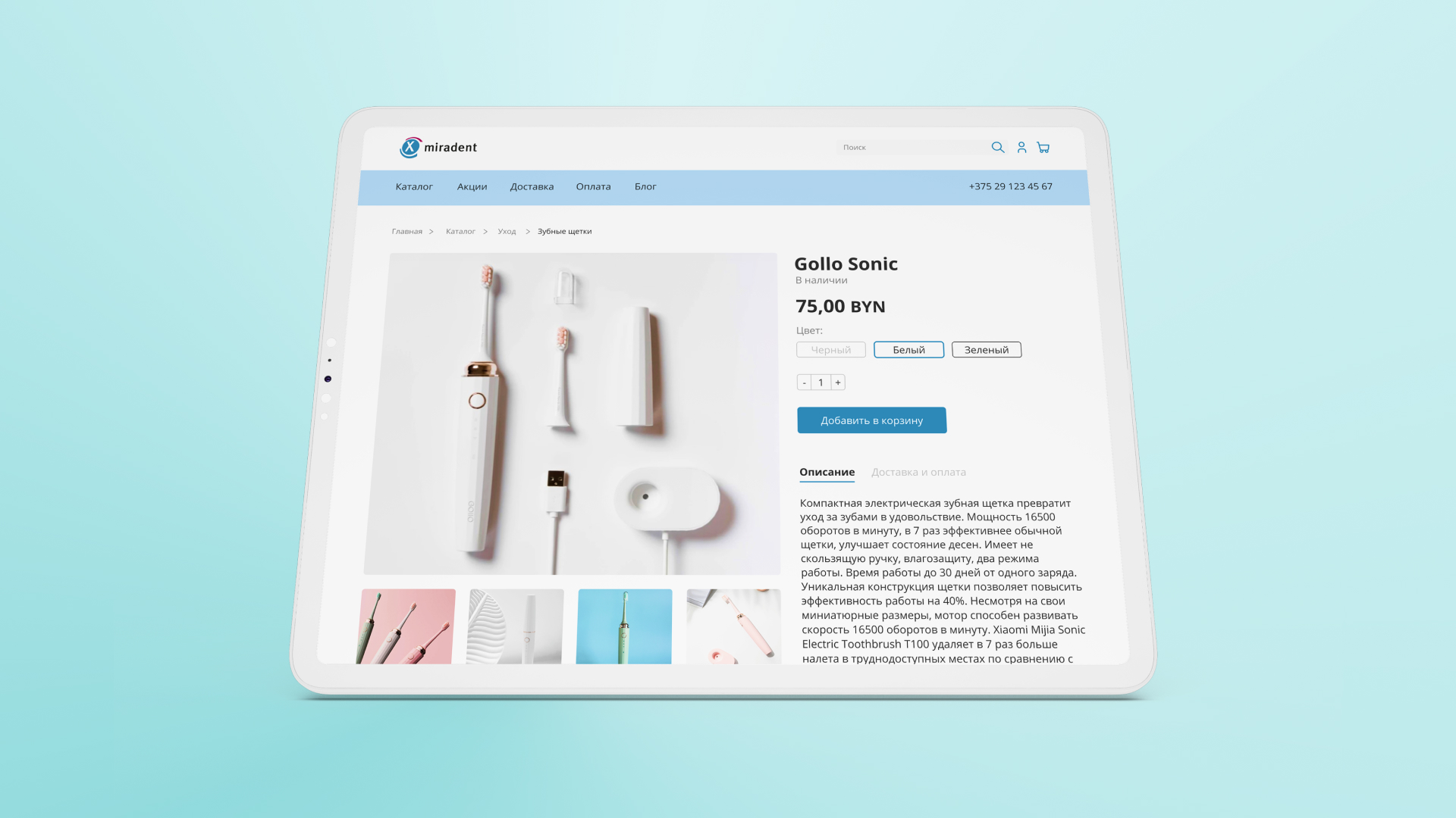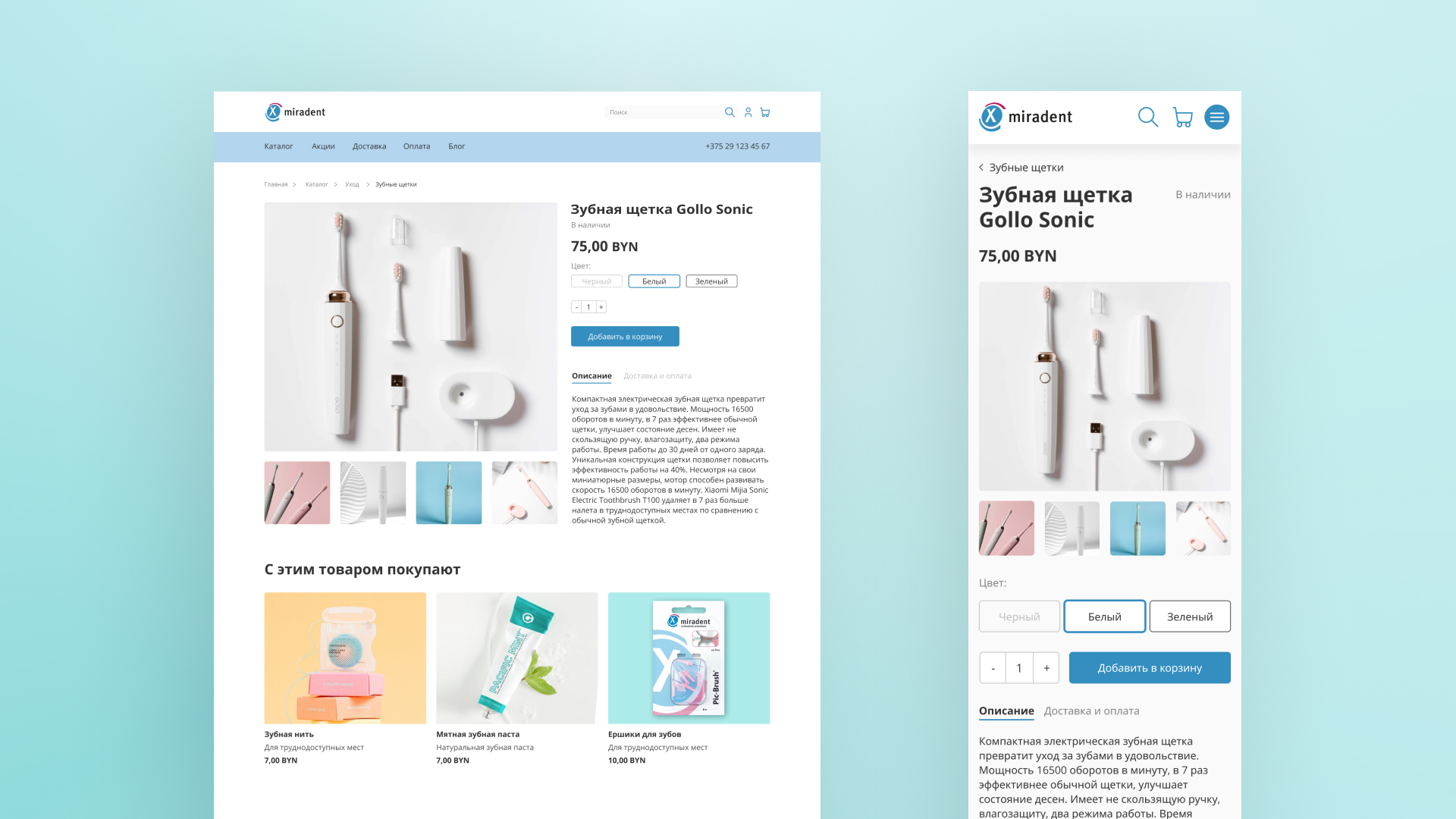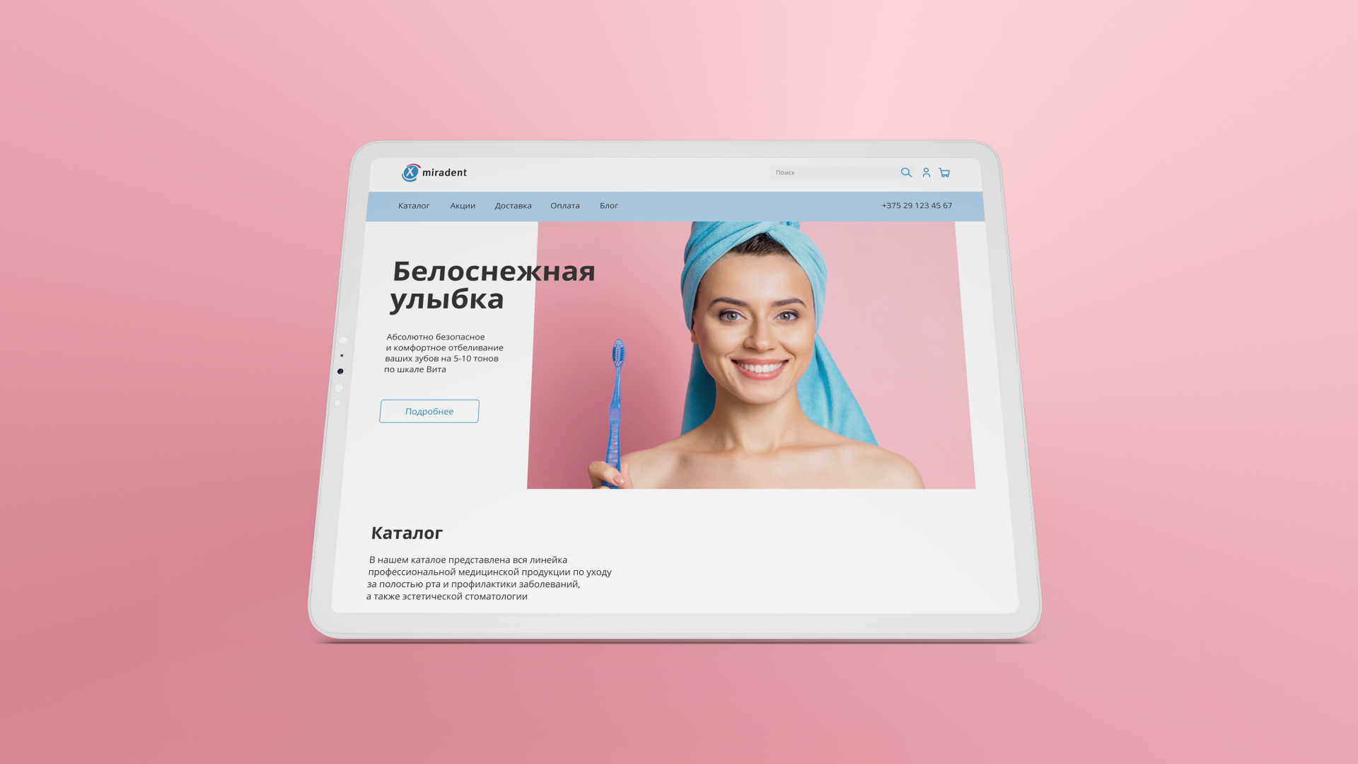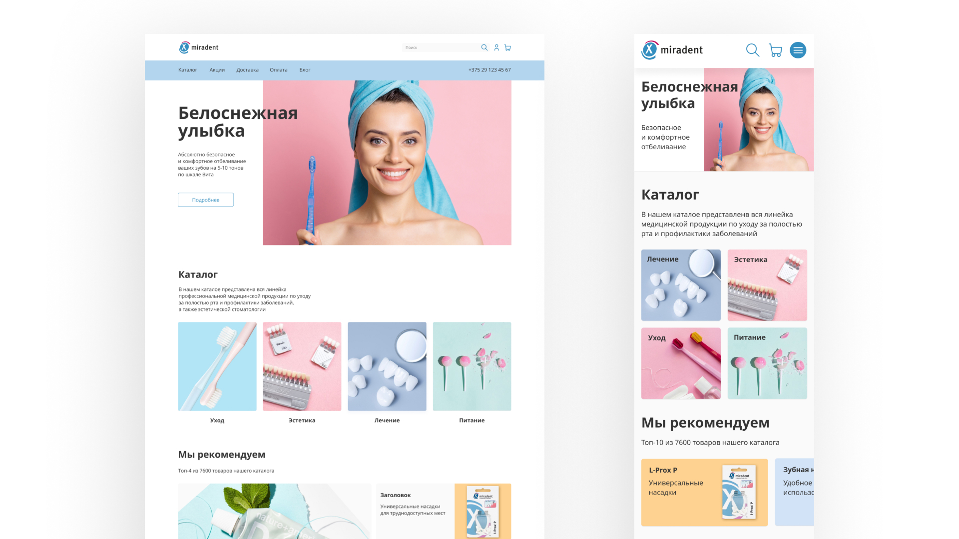 Miradent — бренд стоматологической продукции, для которого был разработан корпоративный сайт с каталогом товаров